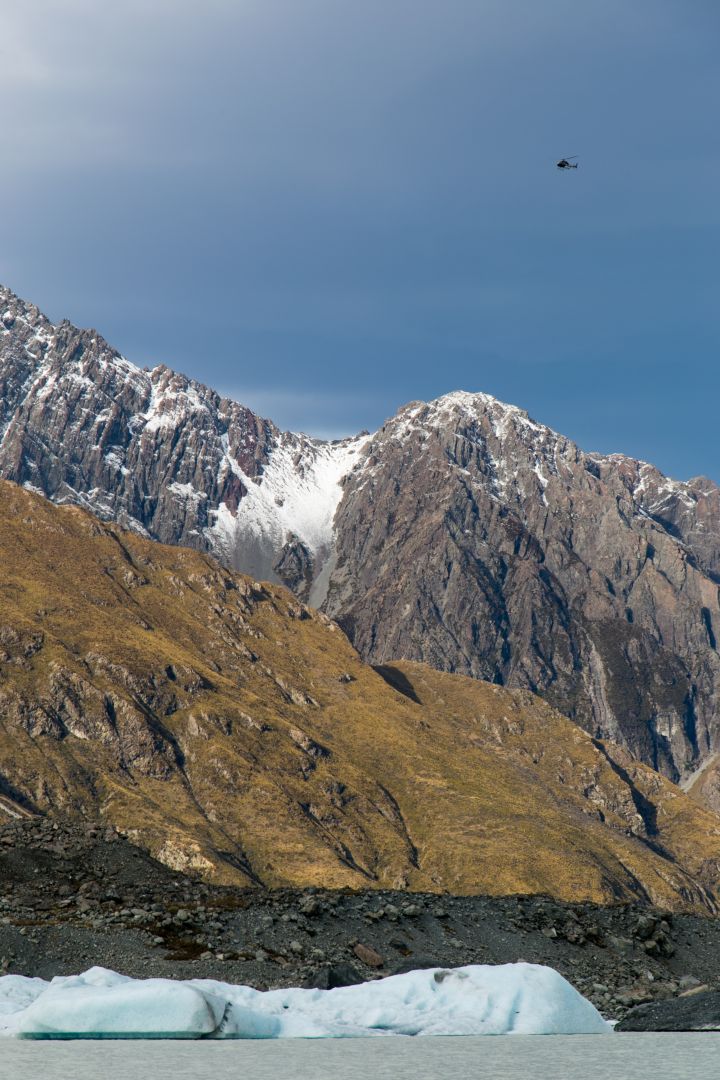 Helicopter over Tasman Glacier Lake