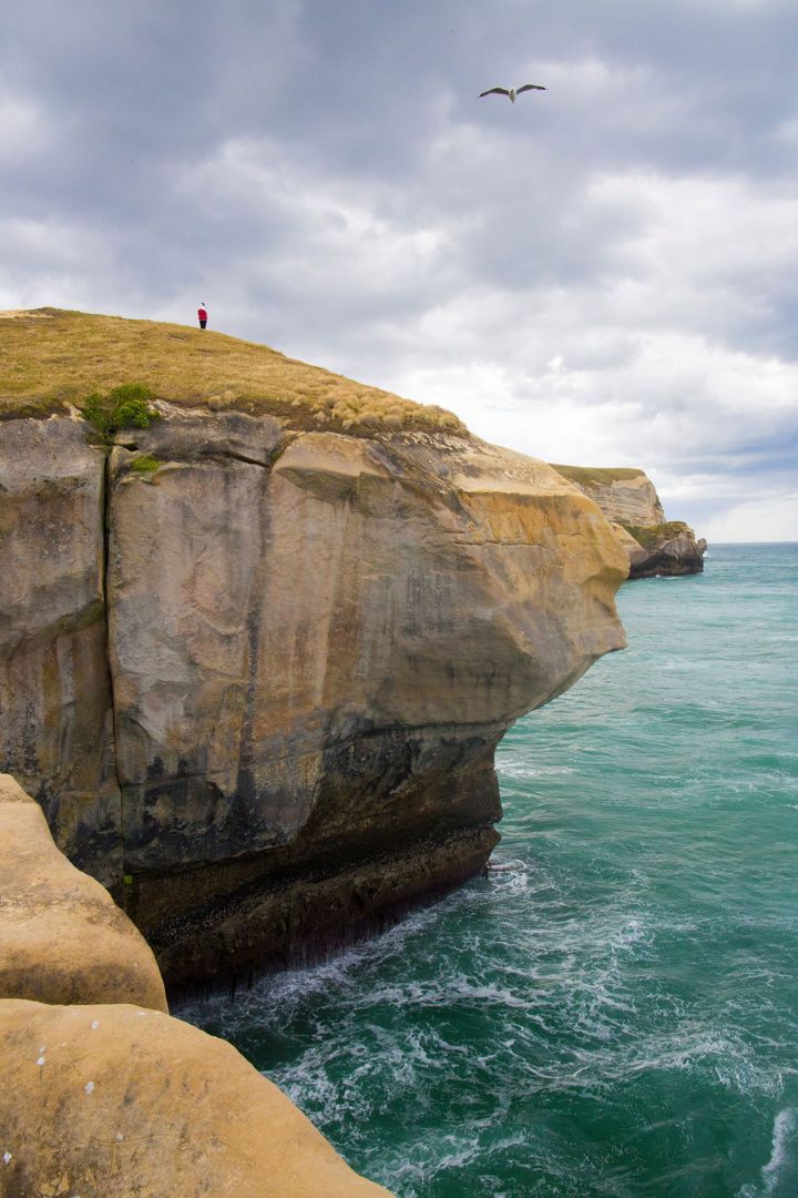 Stranger on the rocks, Tunnel Beach, Dunedin