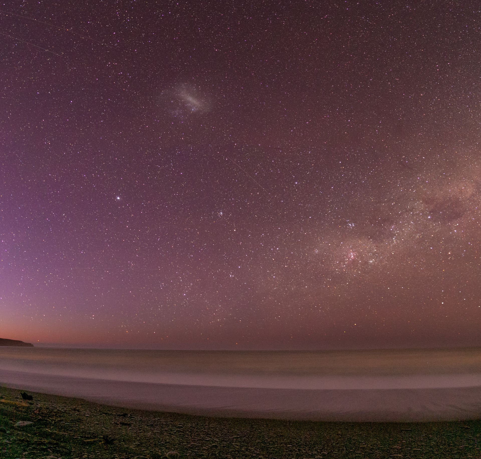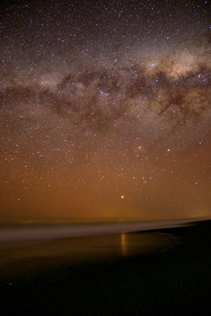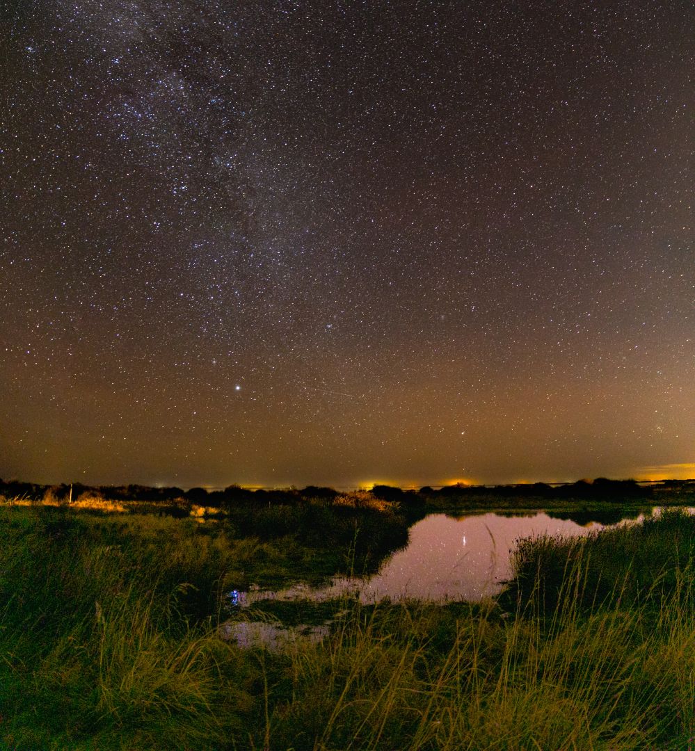 The night sky over a pond at the edge of Lake Ellesmere, Canterbury