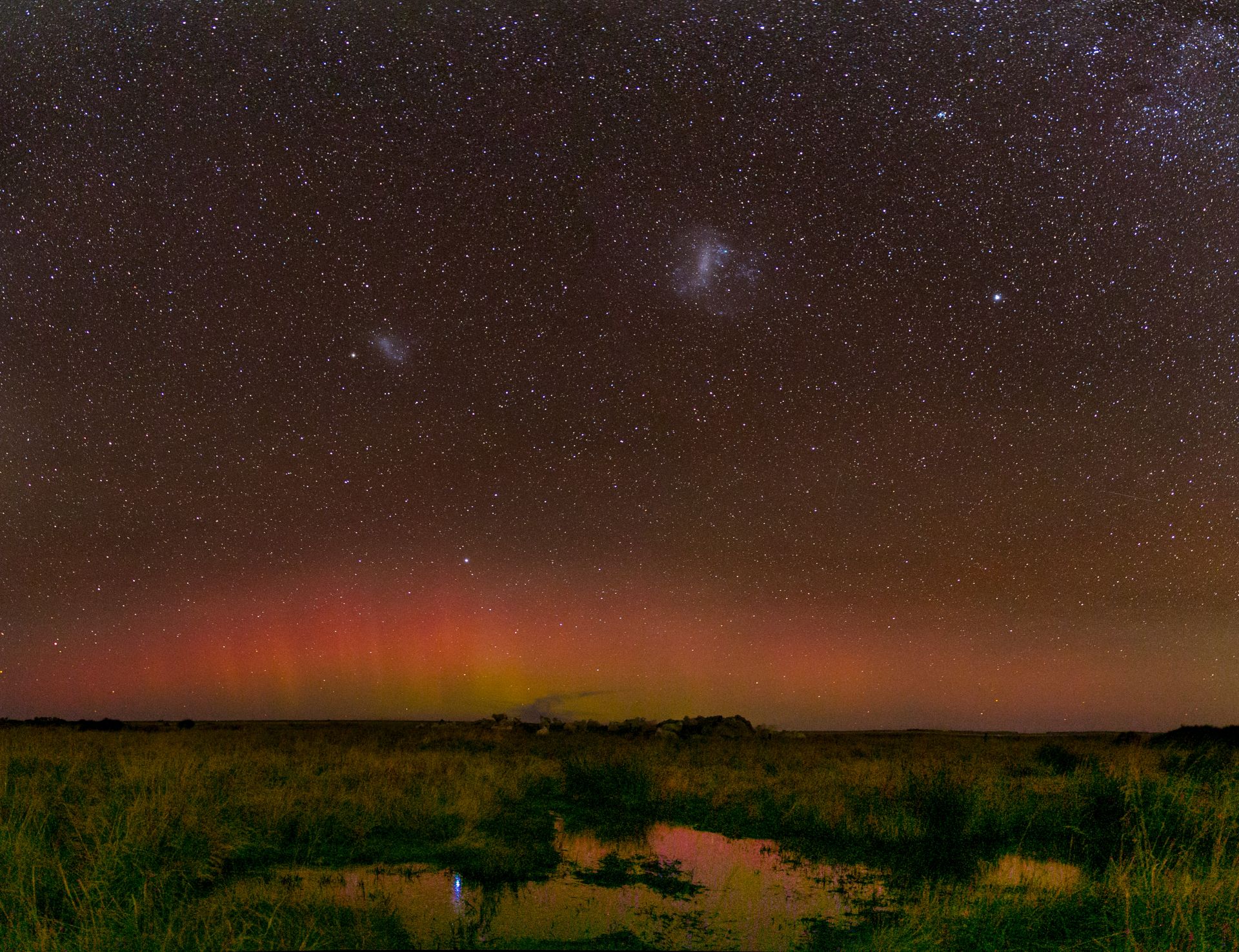 Aurora over a pond at the edge of Lake Ellesmere, Canterbury